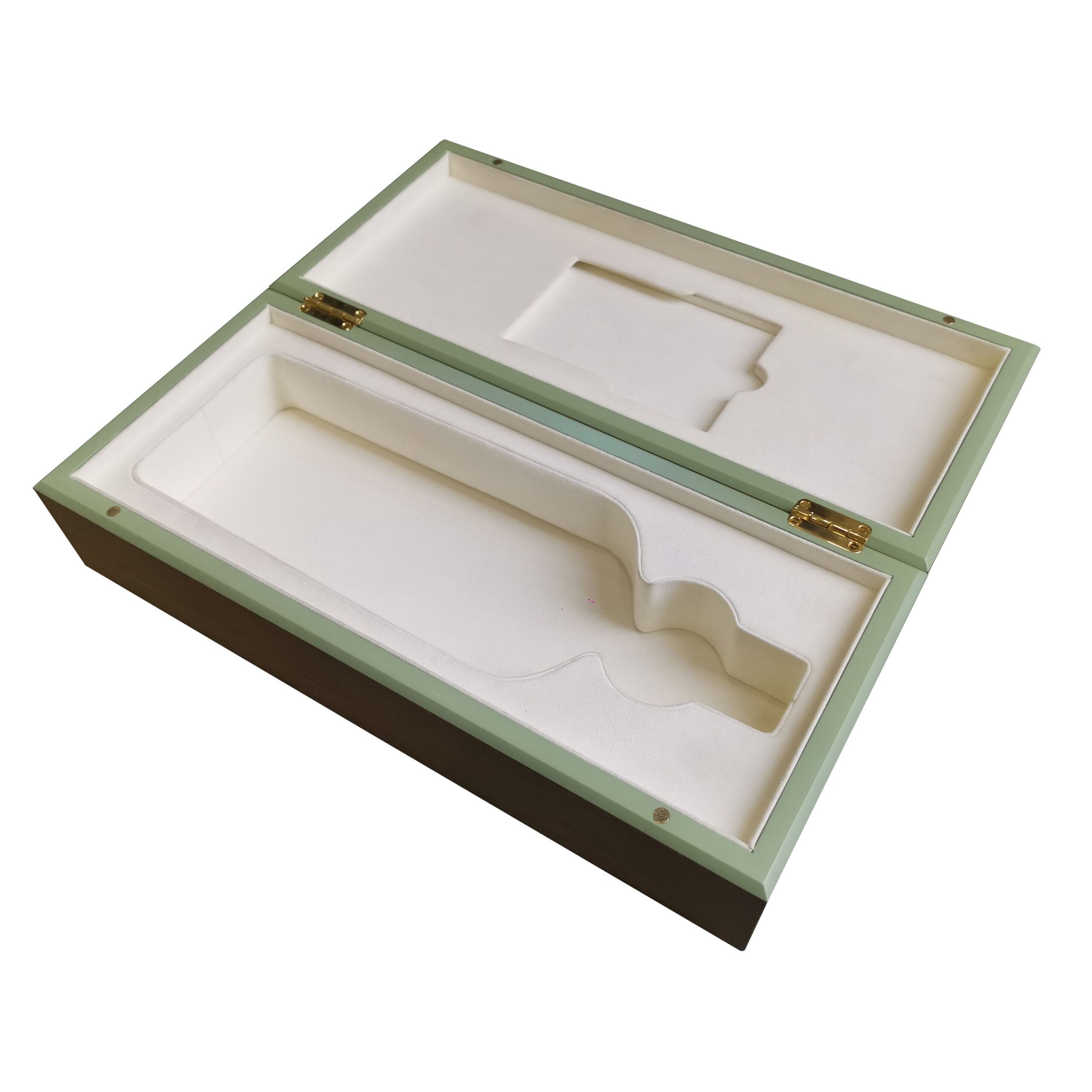 Inside, a customized haven awaits your wine bottle. Crafted from high-density sponge and enveloped in ultra-fiber cloth, the interior molds itself to the bottle’s shape, ensuring a snug fit. Every inch of the box is designed to exude magnificence.